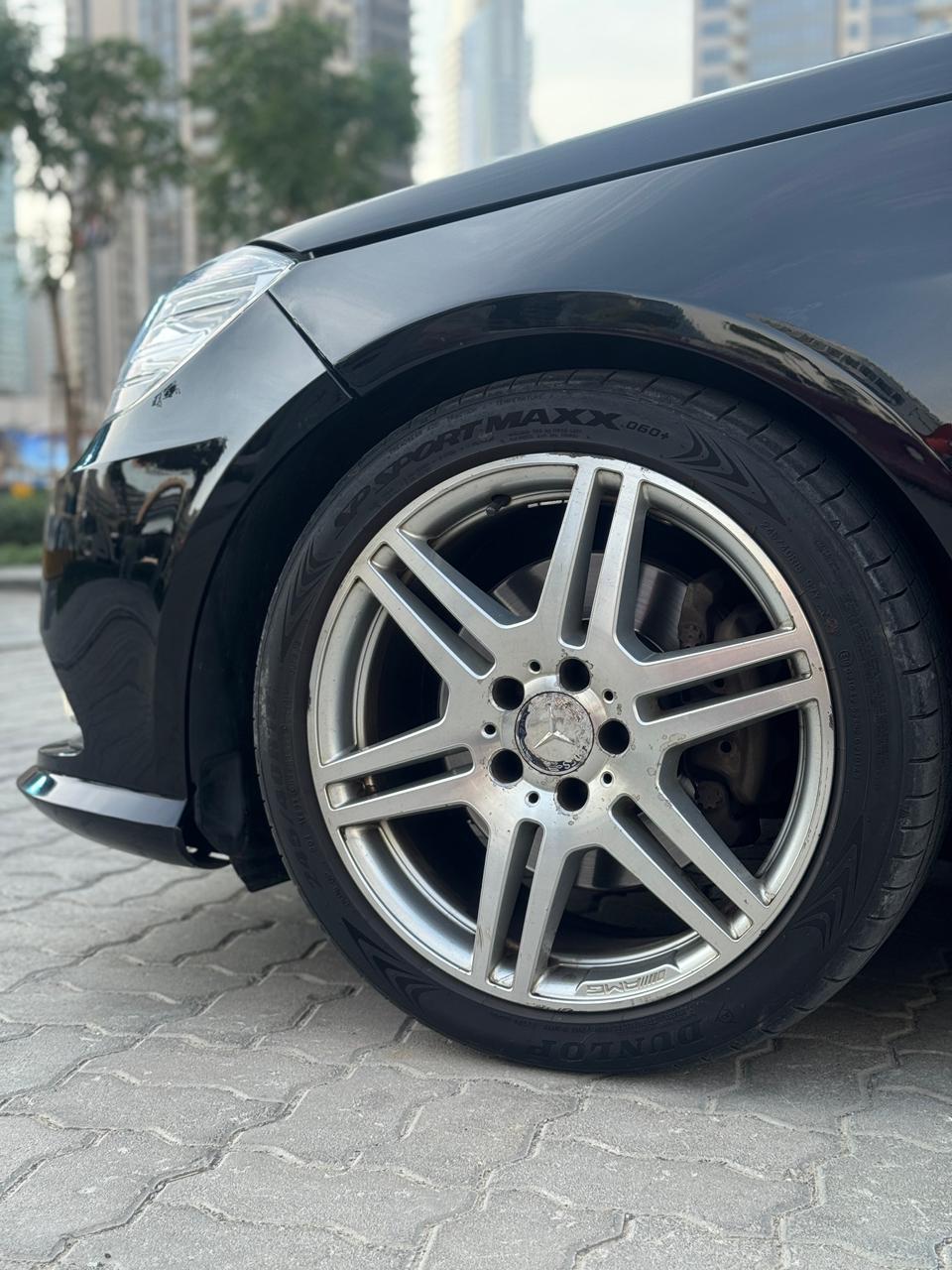 Finished in black exterior with AMG body styling and AMG wheels, wrapped in Dunlop Sport Maxx tires all around.