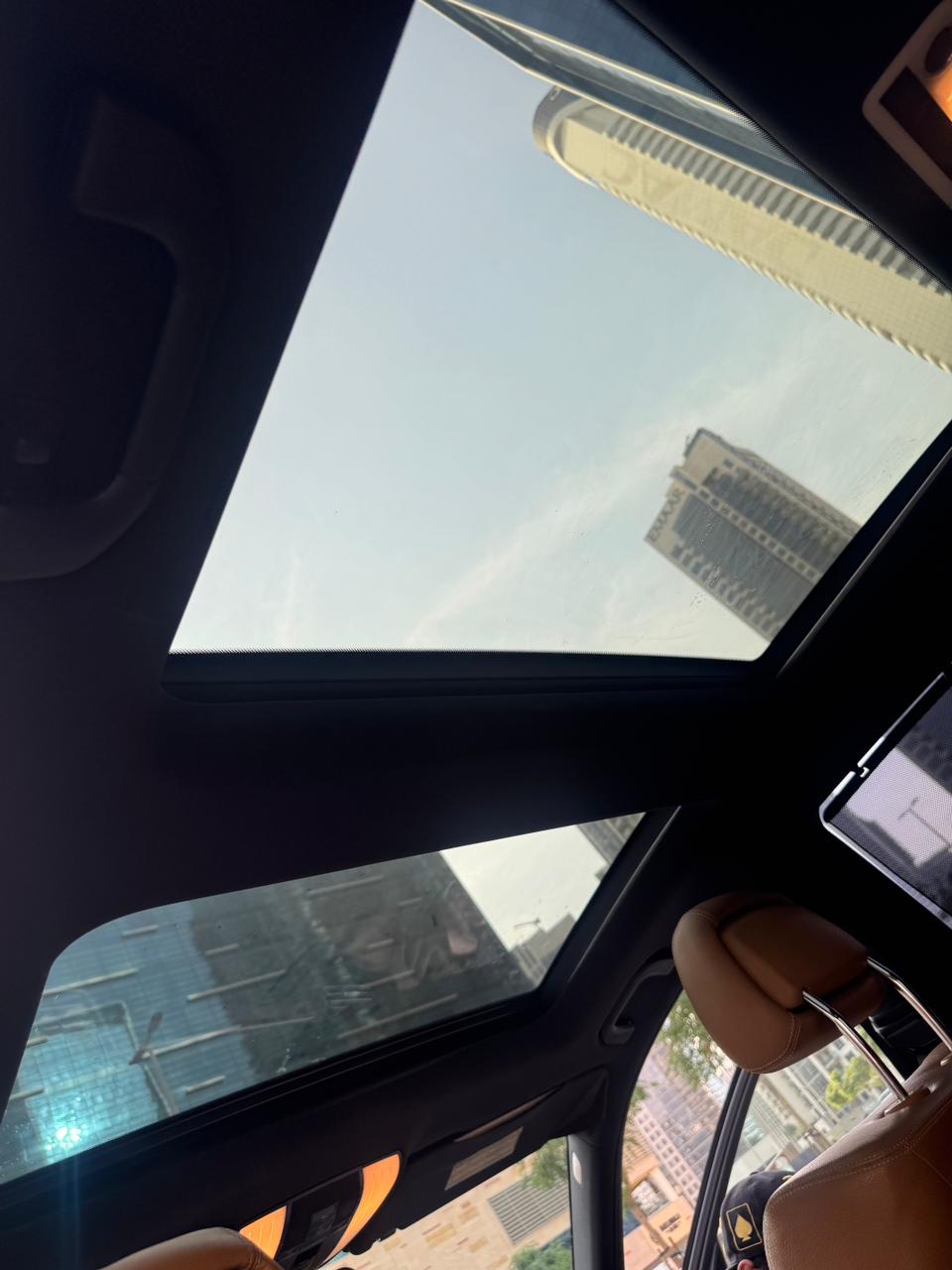 Tan leather interior gives it a classic luxury feel.
