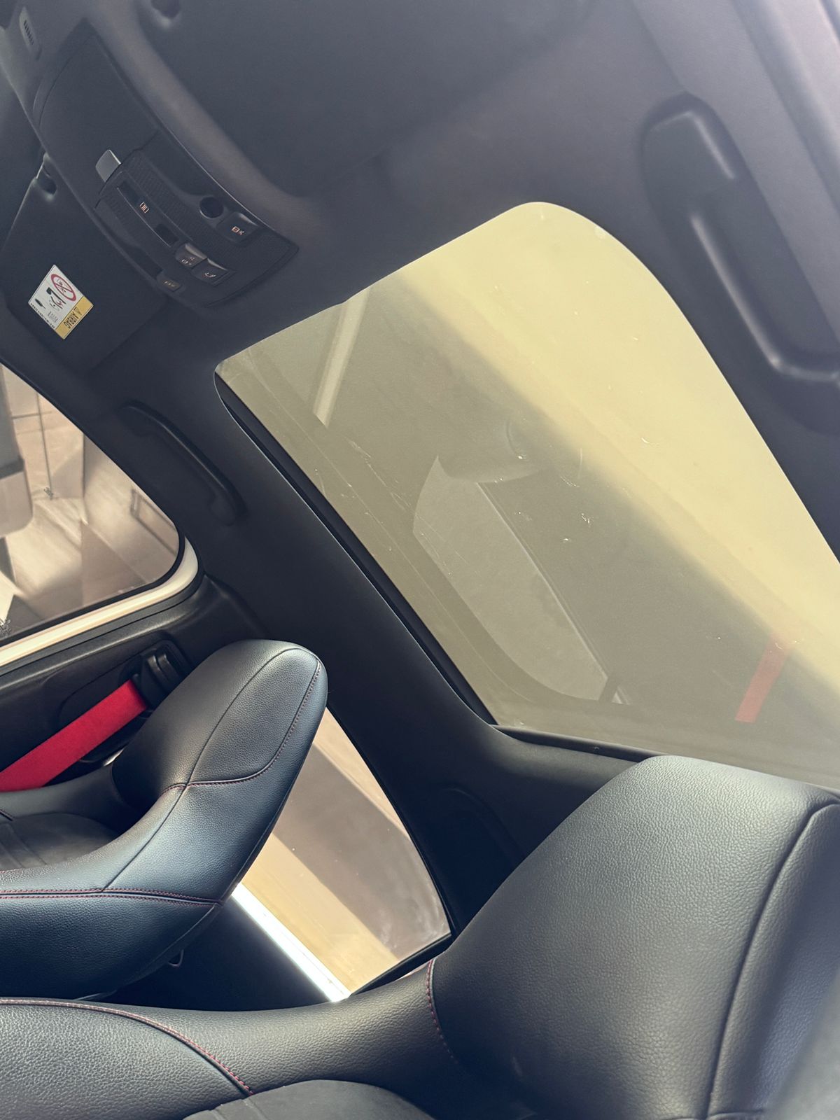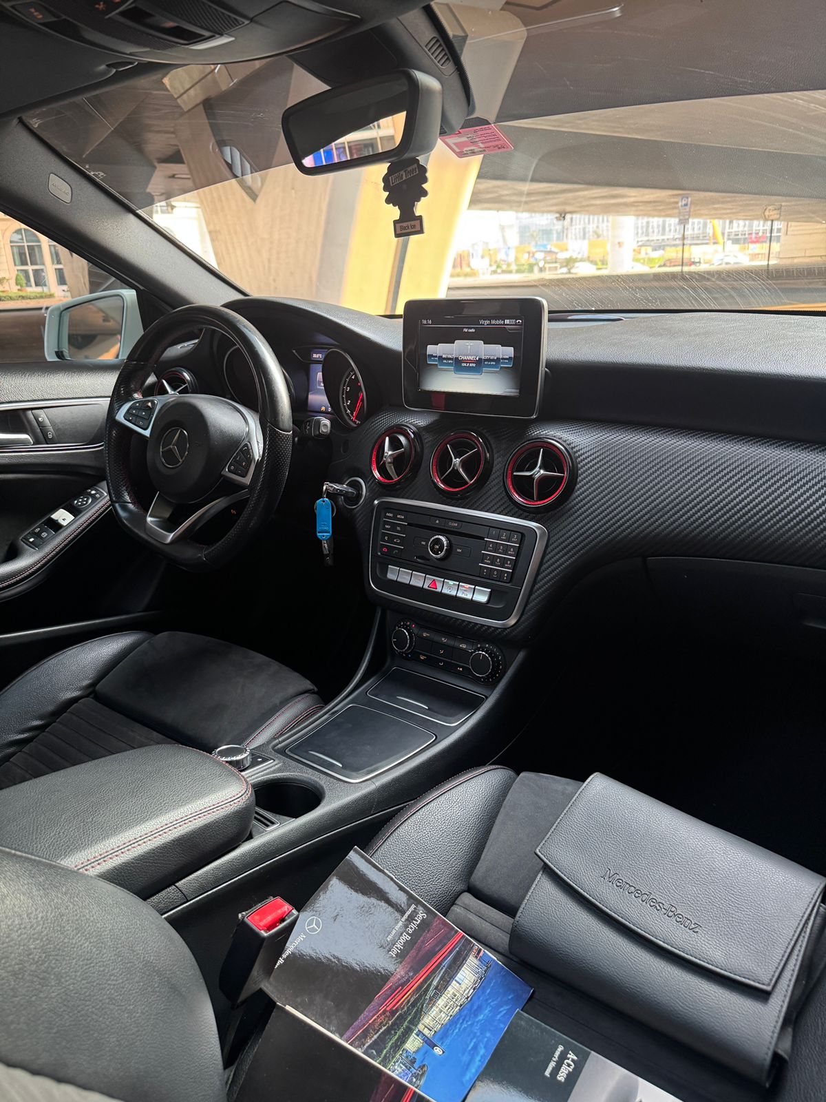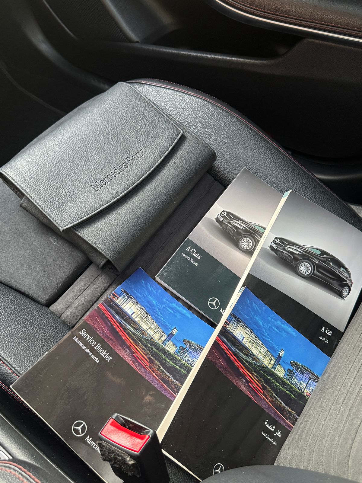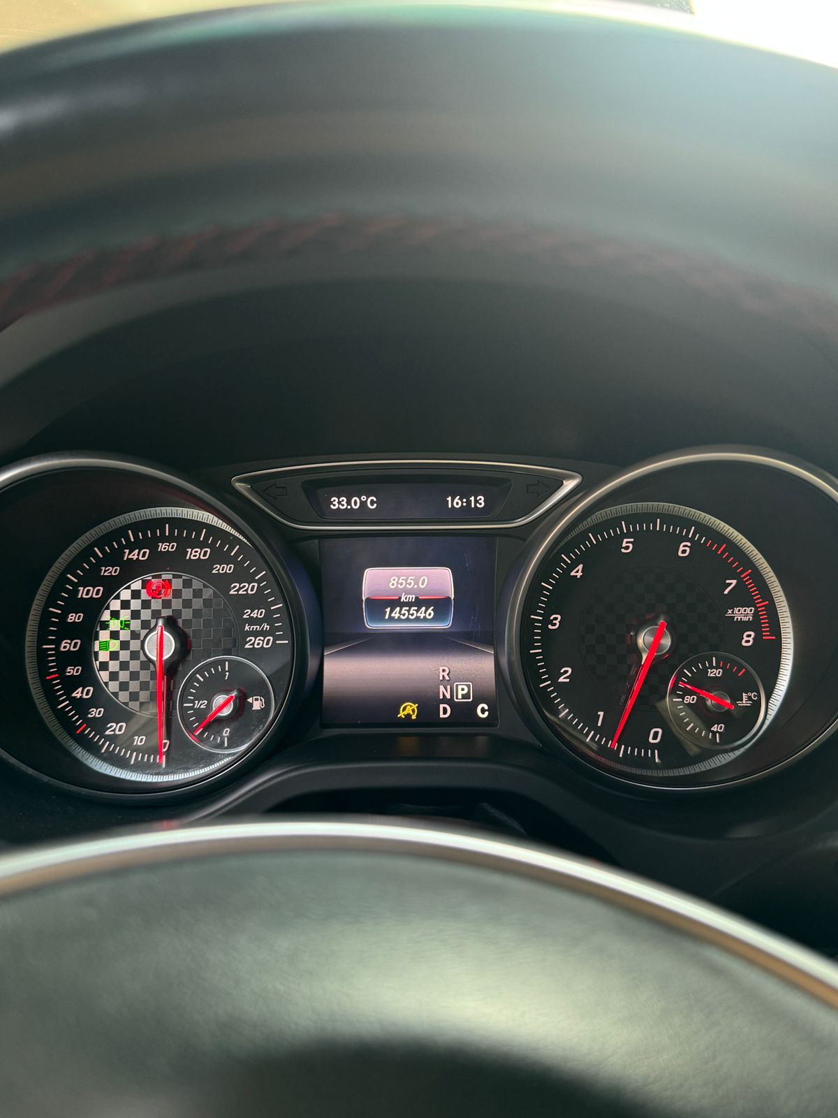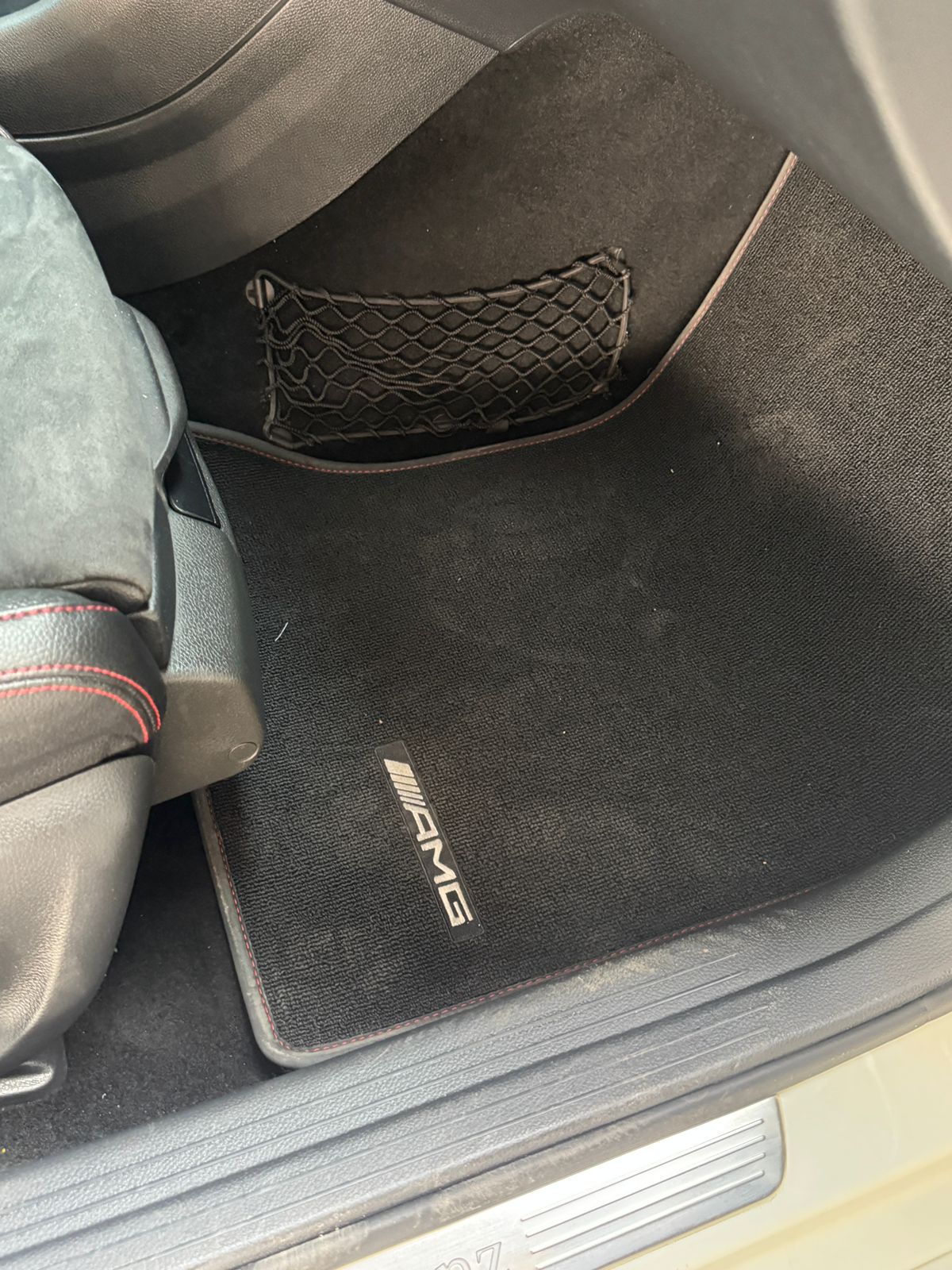 Inside, you get a suede leather interior with red stitching and red seatbelts, AMG mats, paddle shifters, and a long sunroof, all the right sporty touches.
